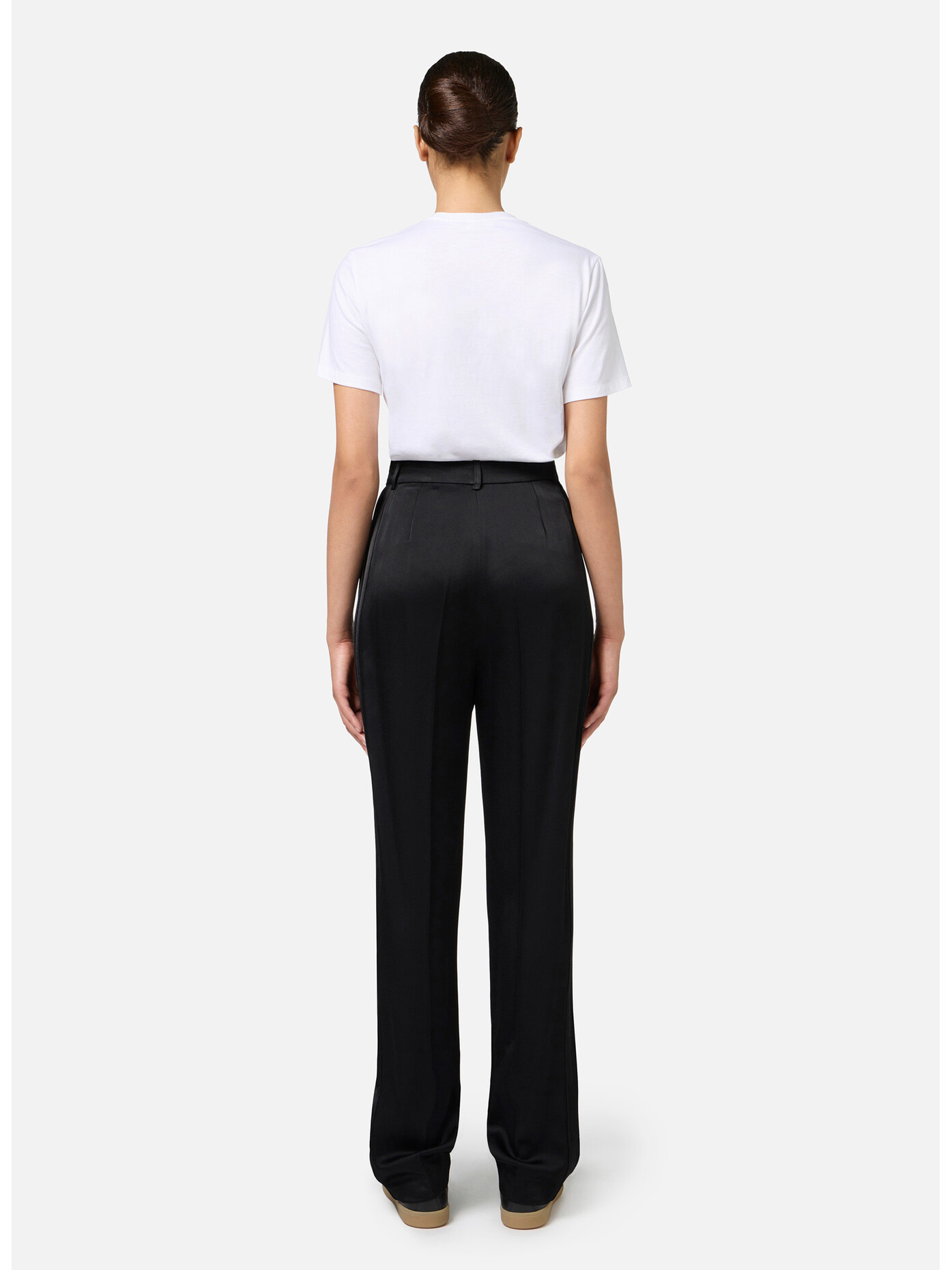 PANTALONE DRITTO IN SATIN CON BANDE IN RASO