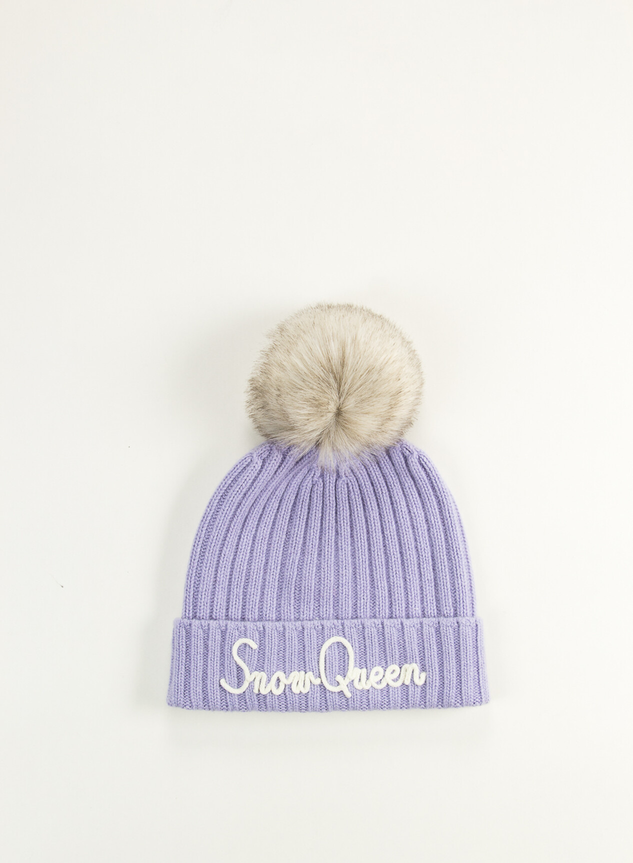Cappello da donna MC2 Saint Barth, realizzato in maglia misto lana con motivo a coste e risvolto con ricamo "Snow Queen".