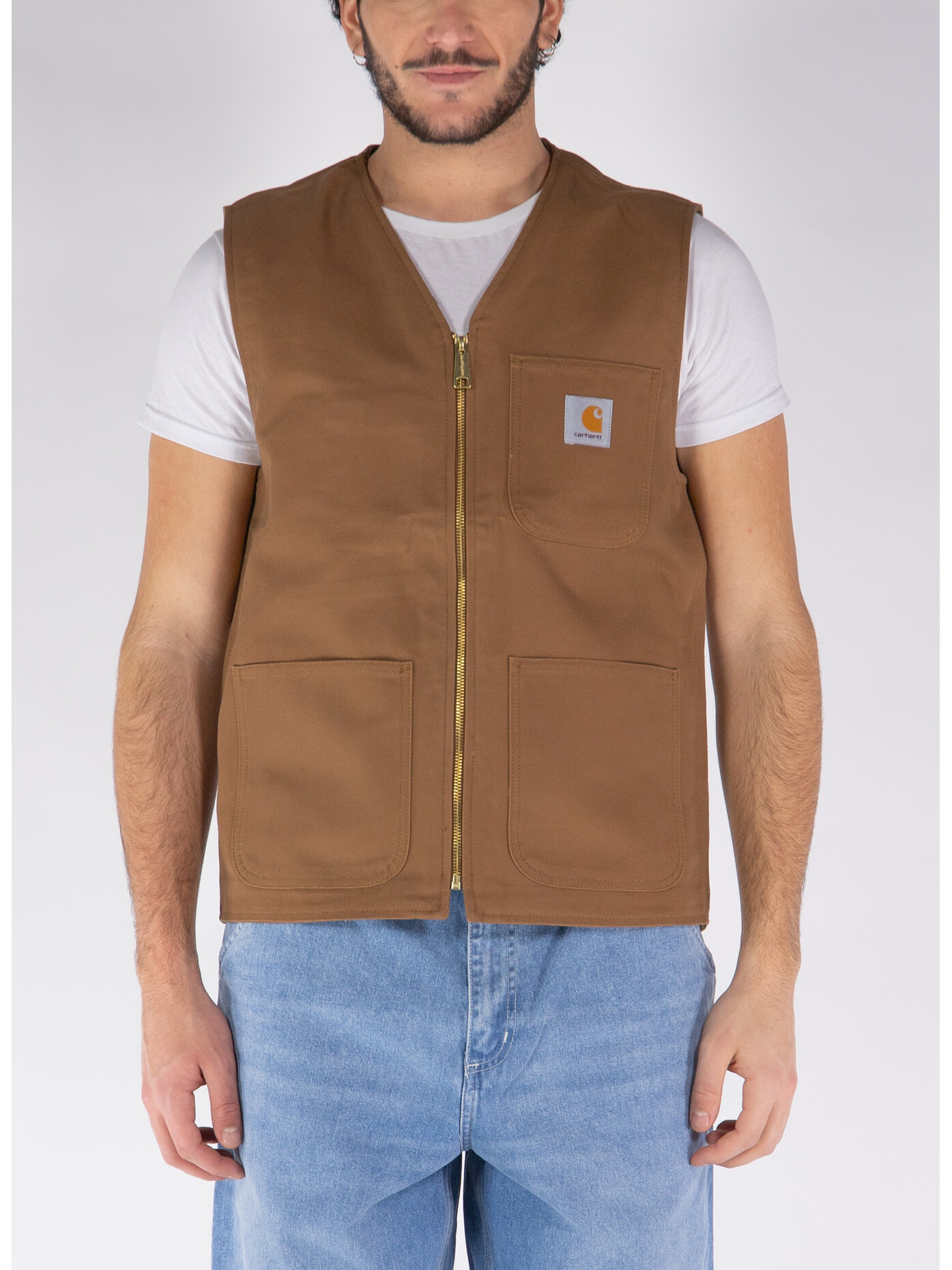 Il capo è dotato di numerose tasche sul davanti ed è impreziosito da classici elementi Carhartt WIP come la chiusura con zip dorata e la tripla impuntura.