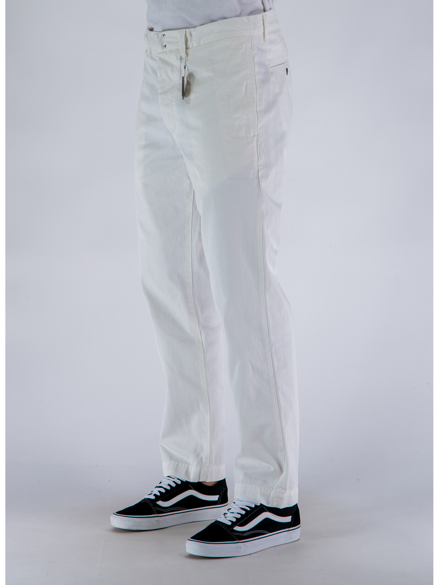 Presenta passanti per la cintura, due Tasche laterali, due Tasche posteriori con chiusura a bottoni colore.