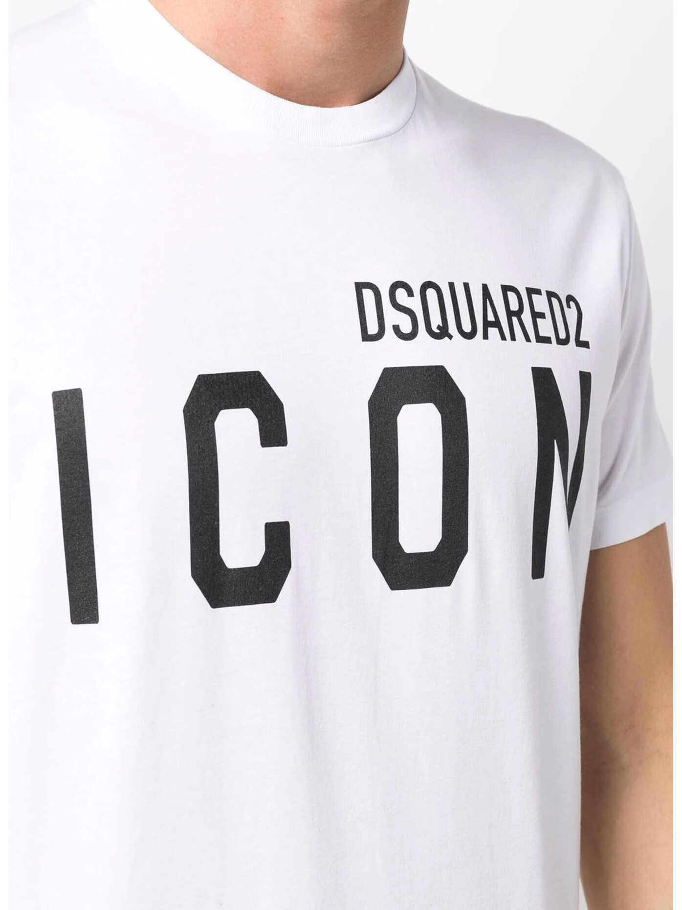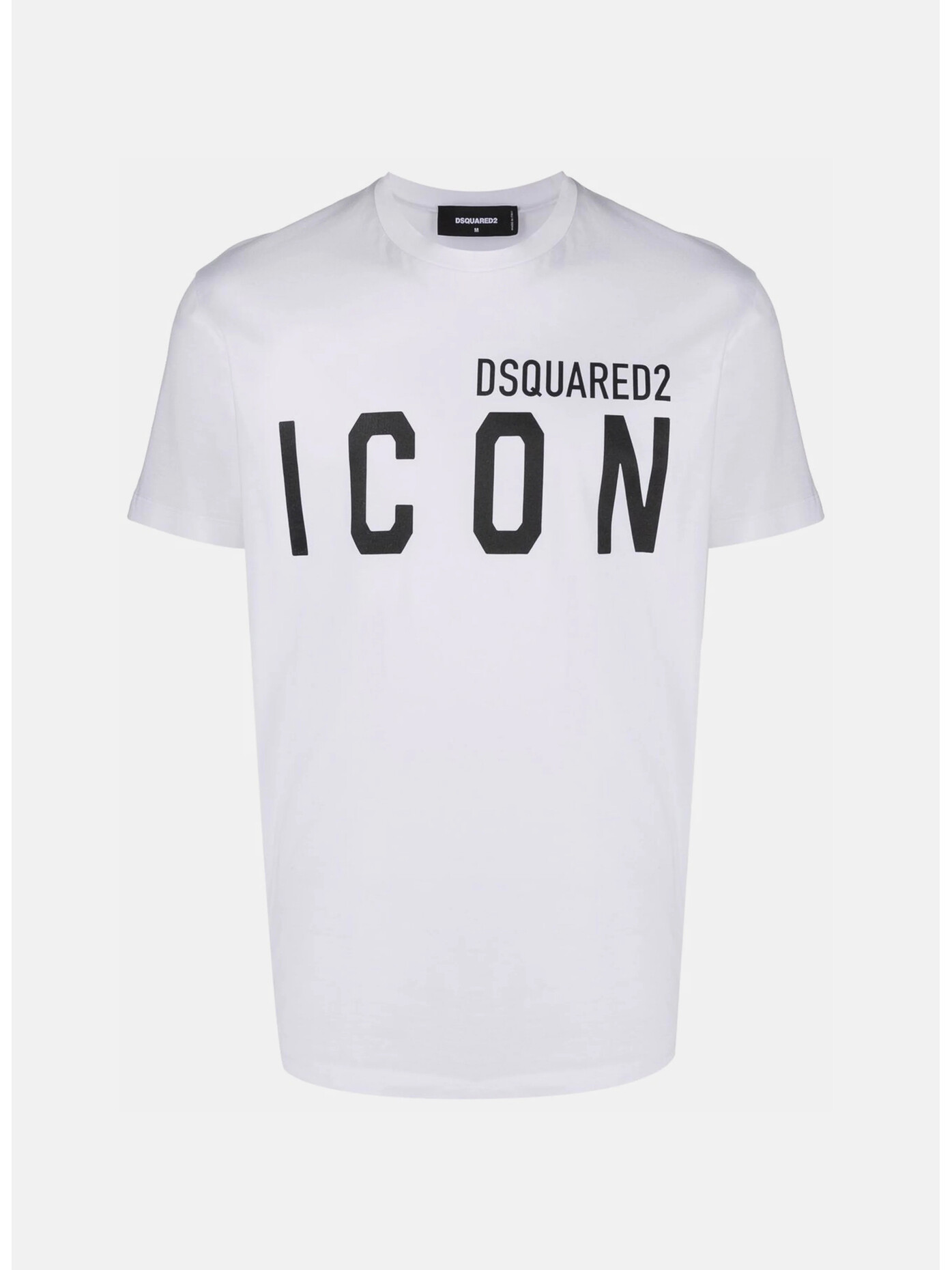 T-shirt di Dsquared modello Icon realizzata in cotone, caratterizzata da maniche corte, girocollo, logo lettering a contrasto sul davanti.